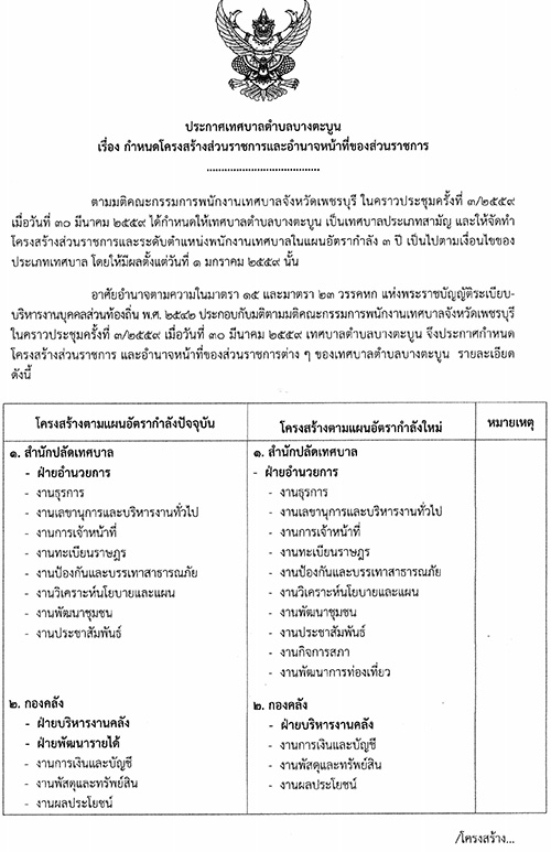 กำหนดโครงสร้างส่วนราชการและอำนาจหน้าที่ของส่วนราชการ